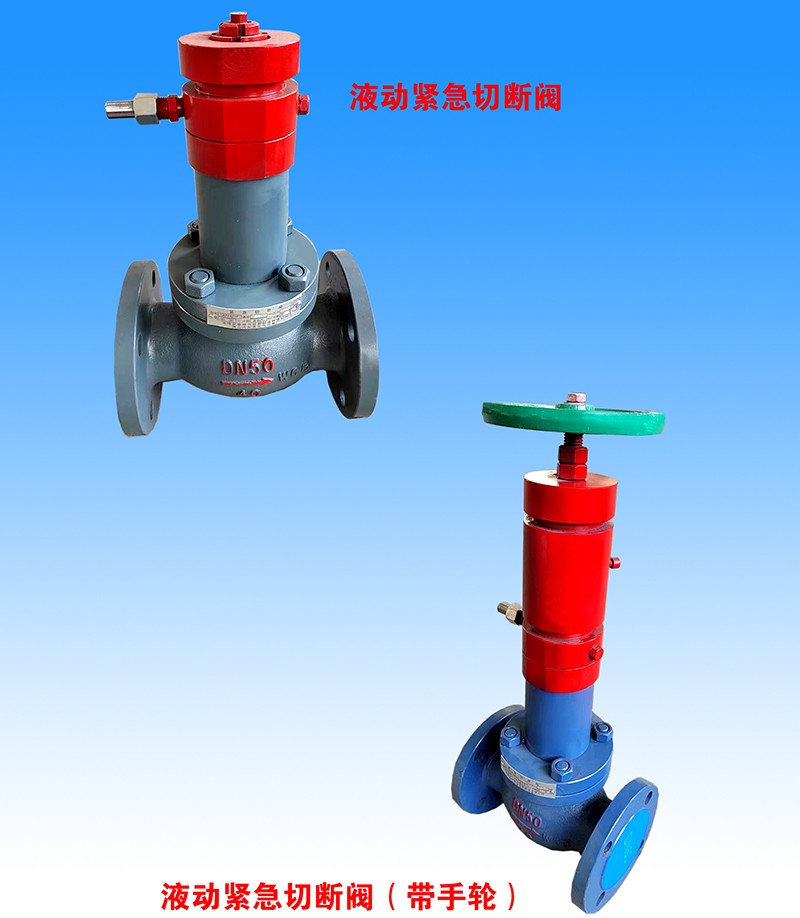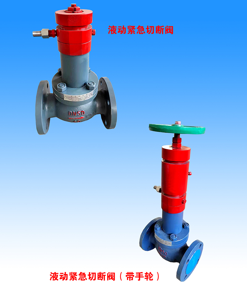 是一種保護閥,同槽車及貯罐主要氣液相接口所裝設的快速閉止閥門,可在現場和一定距離之外借助液壓,氣壓機械實現快速關閉。當外界發生火災等原因使環境溫度升高至規定范圍時,借助易熔件,閥門能快速自動關閉,起安全保護作用。用緊急切斷閥安裝于固定式及移動式貯罐及槽車,作為緊急切斷和防止事故過流切斷用的裝置。
